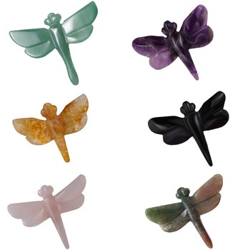 คริสตัลควอตซ์รูปปั้นแมลงปอรักษาคริสตัลพลอยแกะสลักด้วยมือรูปปั้นสัตว์น่ารักตกแต่งโต๊ะบ้านของขวัญตกแต่งผนัง